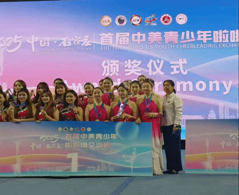 5月26日至27日,由河北省国际教育交流协会、共青团石家庄市委、石家庄学院联合主办的2025年首届中美青少年啦啦操交流赛在石家庄学院火热开赛。我校由国际交流处牵头,艺术与传媒学院师生与体育教学部联合组建的啦啦操队,凭借作品《舞韵中华》荣获中美公开青少年组集体自由舞蹈啦啦操项目一等奖。