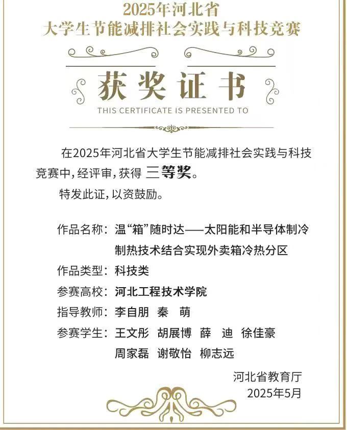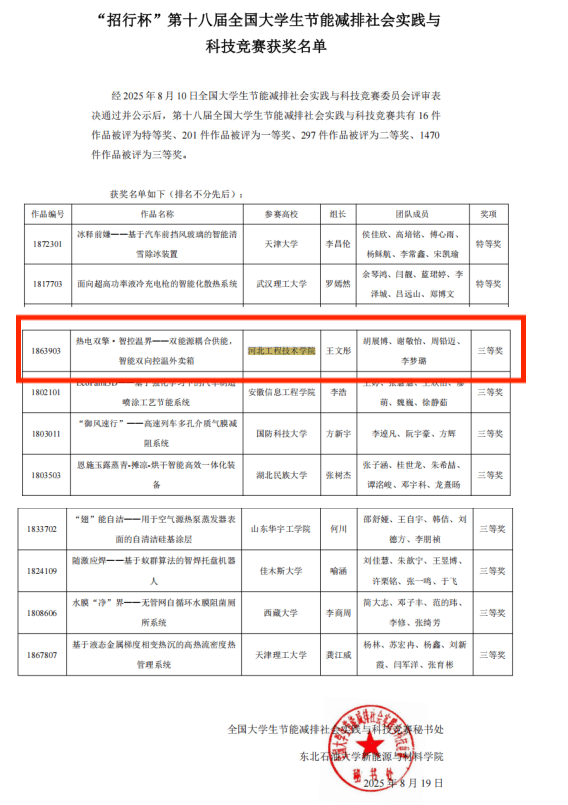 近日,2025年第十八届全国大学生节能减排社会实践与科技决赛圆满落幕,我校土木与建筑学院代表队表现优异,荣获全国三等奖及河北省三等奖,实现该项赛事成绩的历史性突破。